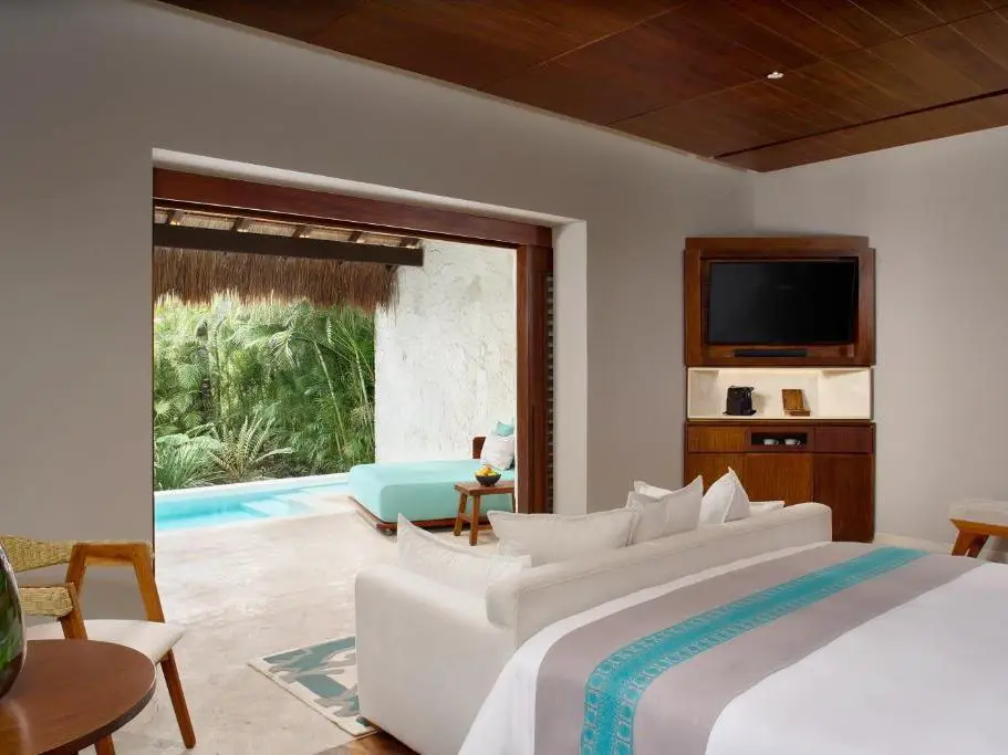 | 4. Andaz Mayakoba Rating: ⭐⭐⭐⭐⭐ Location: 15 min drive from Playa del Carmen center, Mayakoba Resort area Guest Reviews: Friendly staff, calm setting, great breakfast, scenic bike paths Best Room: Serenity Suite with Plunge Pool and Ocean View Price: From USD $830 – $2,200 per night |