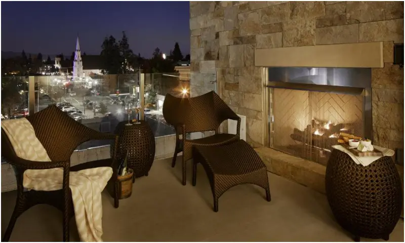 - Fireplace – Most of our Napa Valley couples’ suites come with fireplaces, but two stand out. The Archers Den fireplace on the balcony was a big hit with couples. Each of Hotel Yountville’s suites features lovely stone fireplaces, which guests agreed added to the romance.