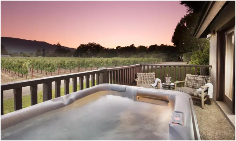 - Private Hot Tub – What could be more romantic than a luxury suite with a private hot tub for two? Harvest Inn’s Vineyard View Spa Suite is the best choice with its huge outdoor hot tub. Napa Valley Lodge’s Bella Vista Suite is another option with a jetted tub in the ensuite bath.