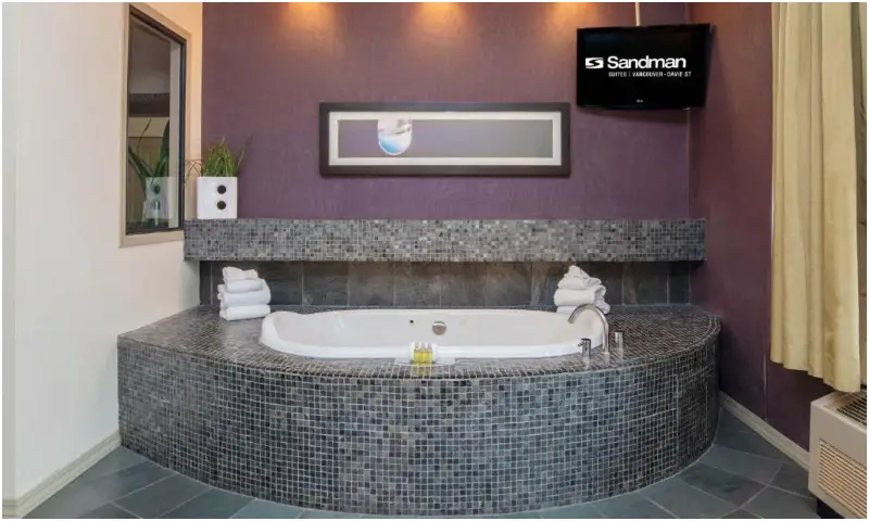 - Sandman Suites Vancouver on Davie – Sandman Suite Vancouver’s Penthouse Suite is a great choice for couples looking for a suite with an in-room hot tub. You’ll have a nice view overlooking Vancouver, but you can also close the curtains for extra privacy.